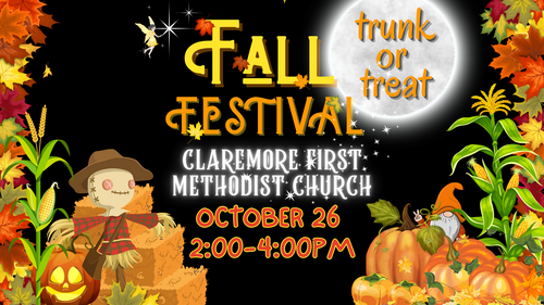 Thank you for volunteering for Fall Festival! For questions, contact Sarah Litterell at slitterell@claremorefmc.org.
